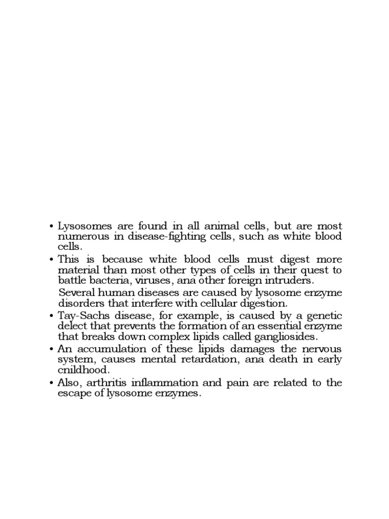 If an animal has a set of organs held together and protected by. Lysosomes are tiny sacs filled with enzymes that enable the cell to process nutrients. Lysosomes occur freely in the cytoplasm. Organelles perform different functions that help the cell survive and replicate, and one of the organelles, the lysosome, carries out a wide variety of functions. Hospitals are also a very important factor in our world, because it saves the lysosome would be compared with hospital's janitor and the bed pan cleaner.